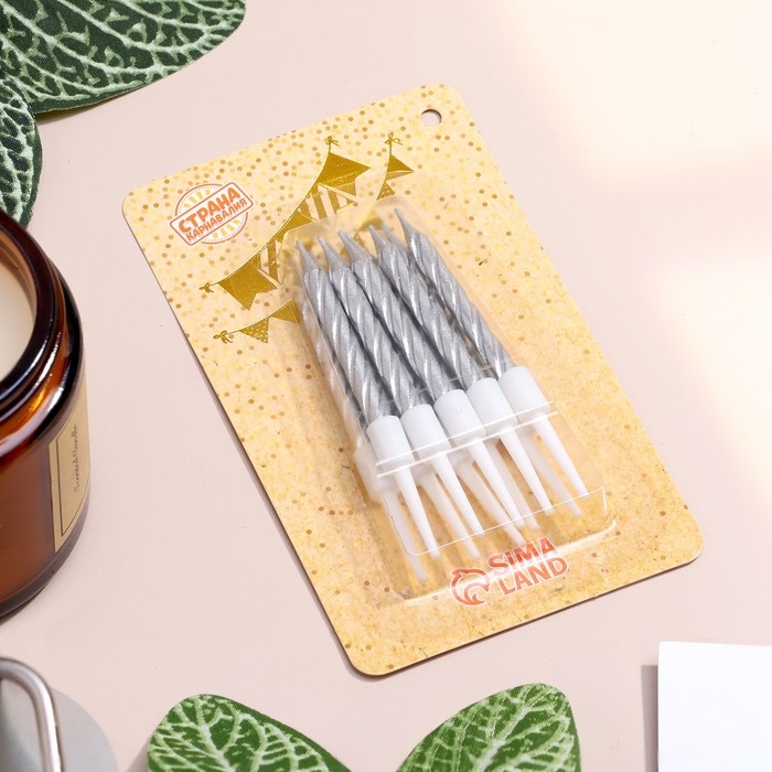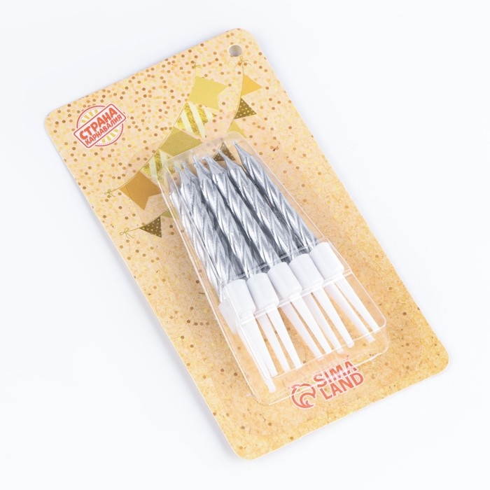 Свечи в торт "Спираль", 10 шт, средние, 5 см, металлик