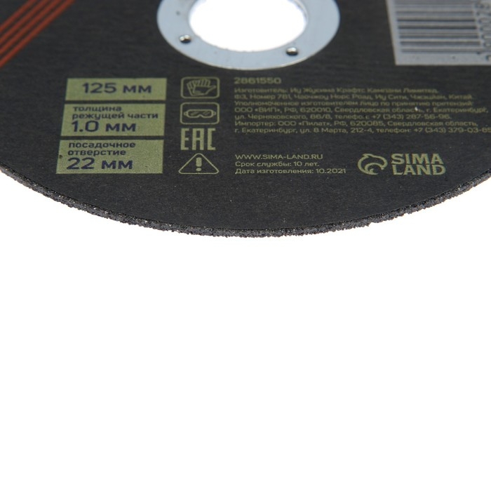 Круг отрезной по металлу ТУНДРА, армированный, 125 х 1.0 х 22 мм