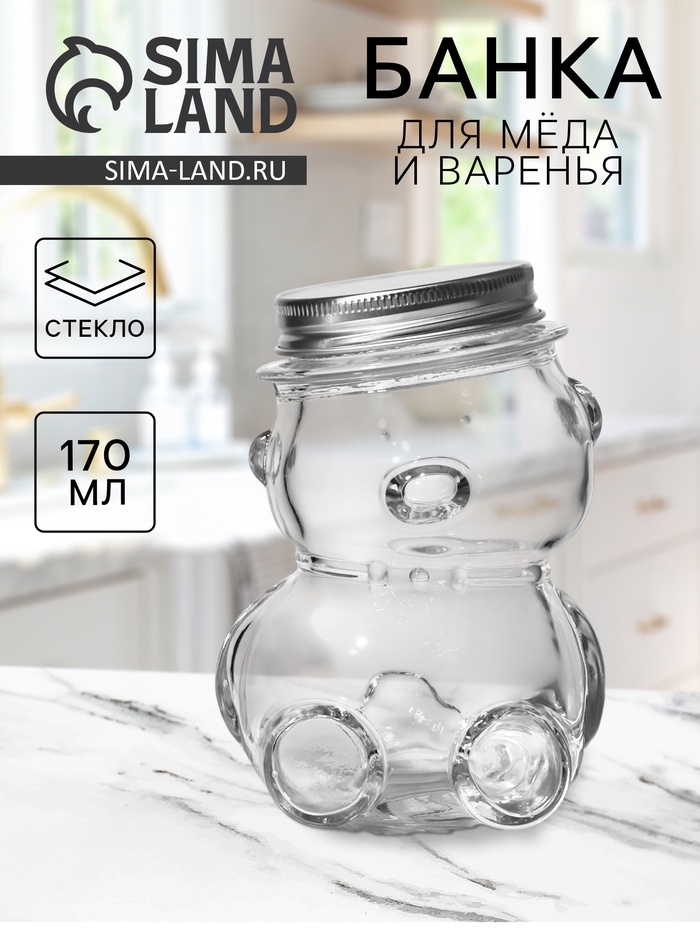 Баночка стеклянная для мёда и варенья «Медвежонок», 170 мл, 7×10 см