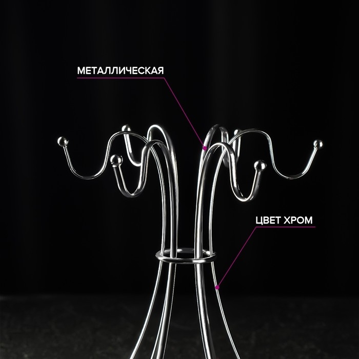 Подставка для кружек на 6 предметов Доляна, 16×16×32 см, цвет хромированный