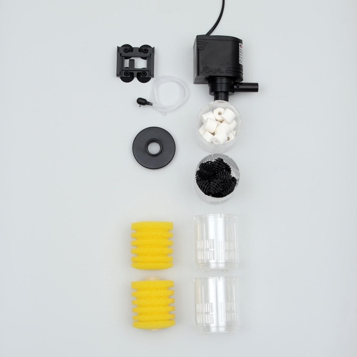 Фильтр крепится на присоски, обеспечивает его надежную фиксацию в аквариуме.