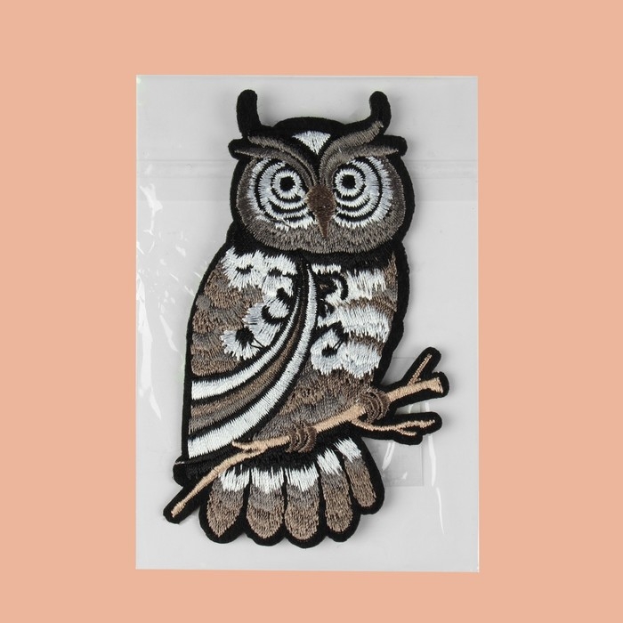 Термоаппликация «Филин», 10,5 × 6,5 см, цвет серый