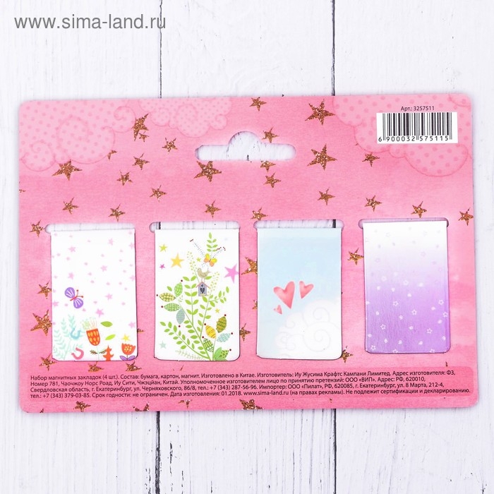Закладки магнитные для книг, 4 шт «Воображай, фантазируй, мечтай»