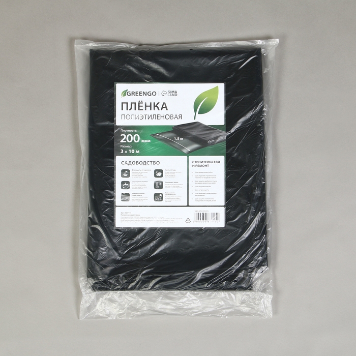Плёнка из полиэтилена, техническая, толщина 200 мкм, чёрная, 10 × 3 м, рукав (1.5 м × 2), Эконом 50%, Greengo