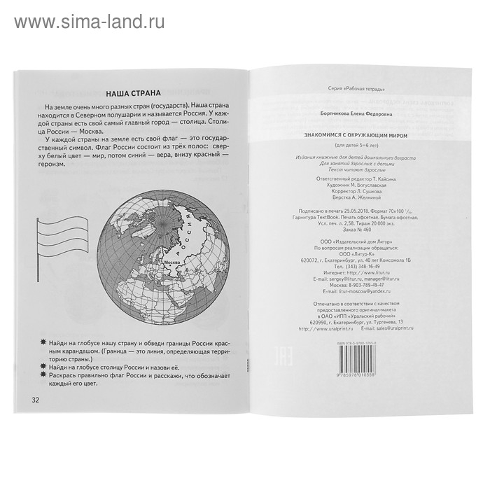 Рабочая тетрадь для детей 5-6 лет «Знакомимся с окружающим миром», Бортникова Е.