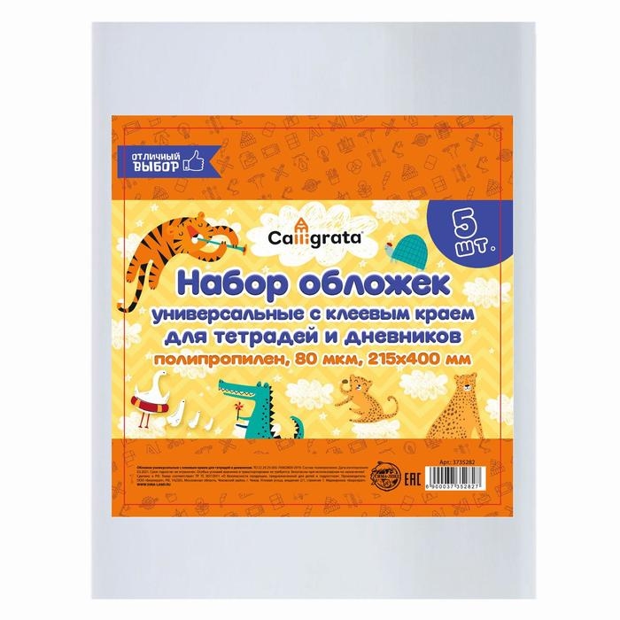 Набор обложек ПП 5 штук, 215 х 400 мм, 80 мкм, для тетрадей и дневников, с клеевым краем, универсальные
