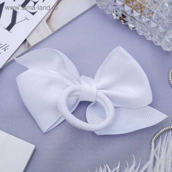 Резинка для волос "Школьница" бант серебристый кант, 9 см, белый