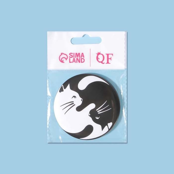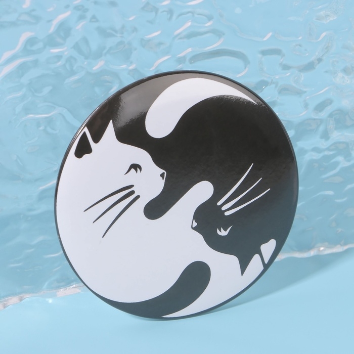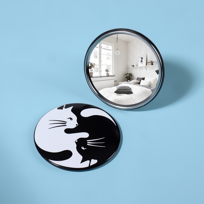 Зеркало карманное «Кошки», d = 7 см, цвет белый/чёрный