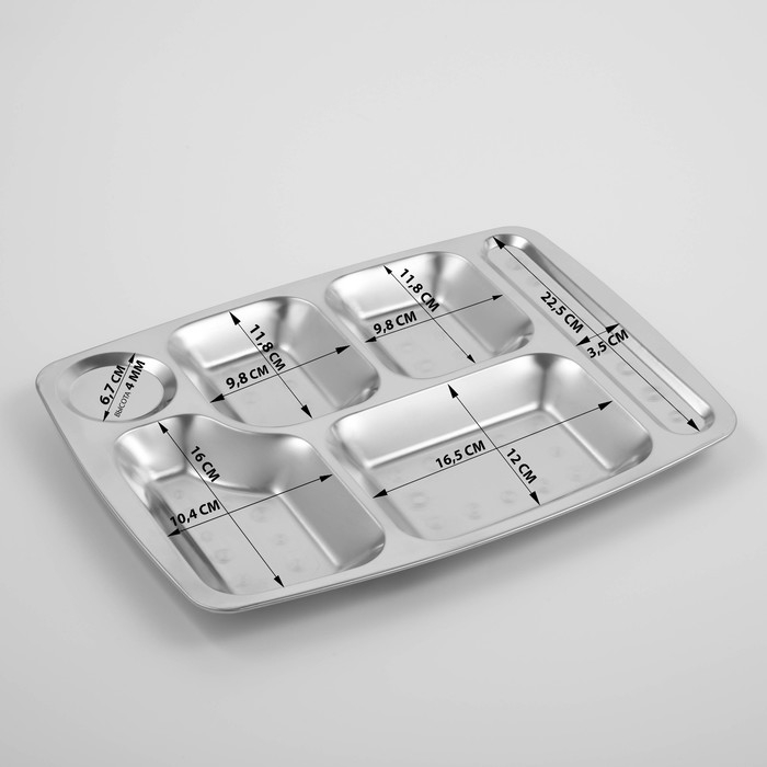 Поднос из нержавеющей стали, 6 секций, 35×26×2 см