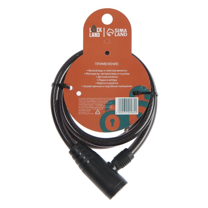 Замок навесной велосипедный LOCKLAND, 12х1000 мм, английский ключ с пластиковой ручкой