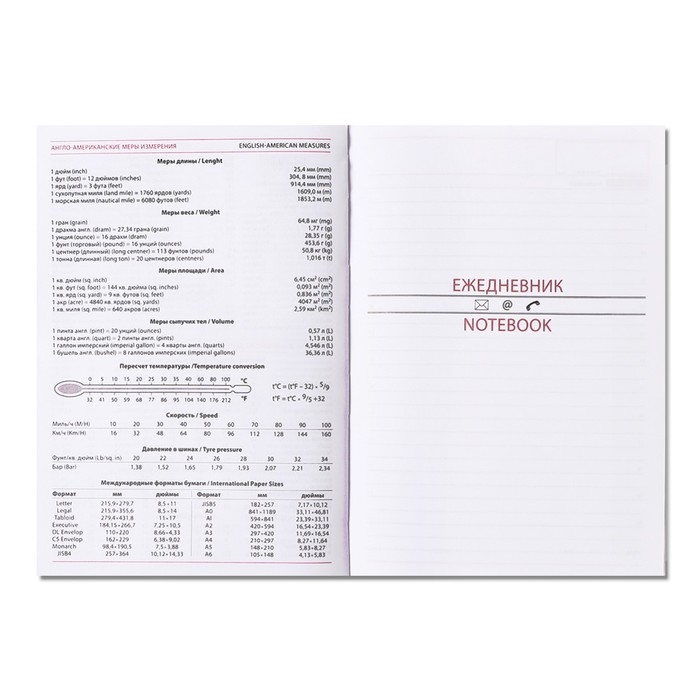 Внутри наших недатированных ежедневников есть различные справочные материалы