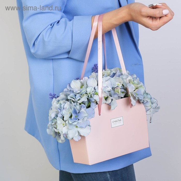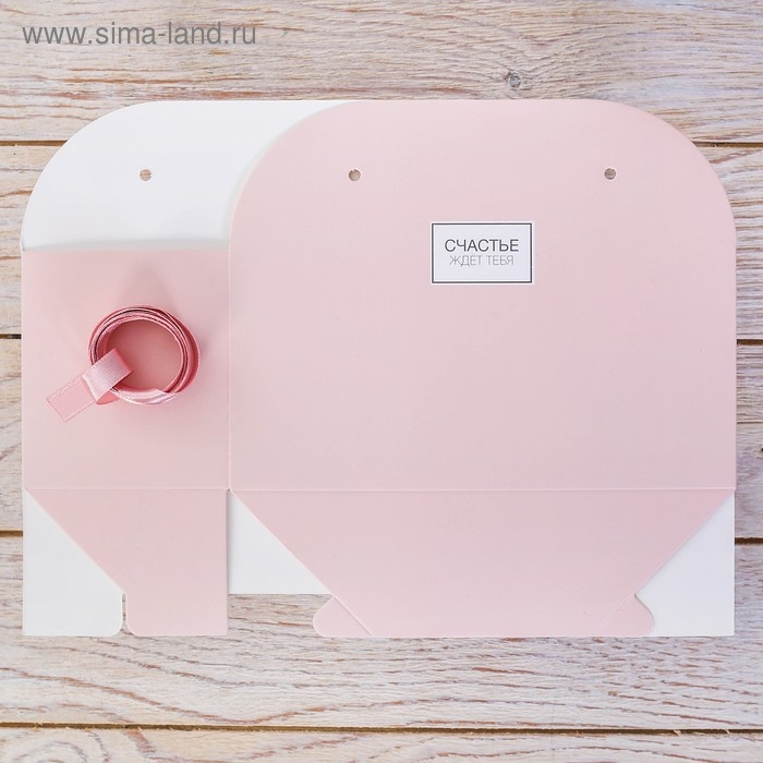 Коробка для цветов складная, розовая «Счастье ждет тебя», 17 × 13 × 7 см