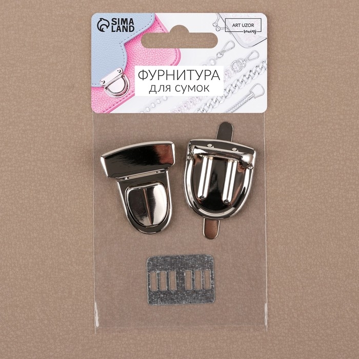Застёжка для сумки, 4 × 3 см, цвет серебряный