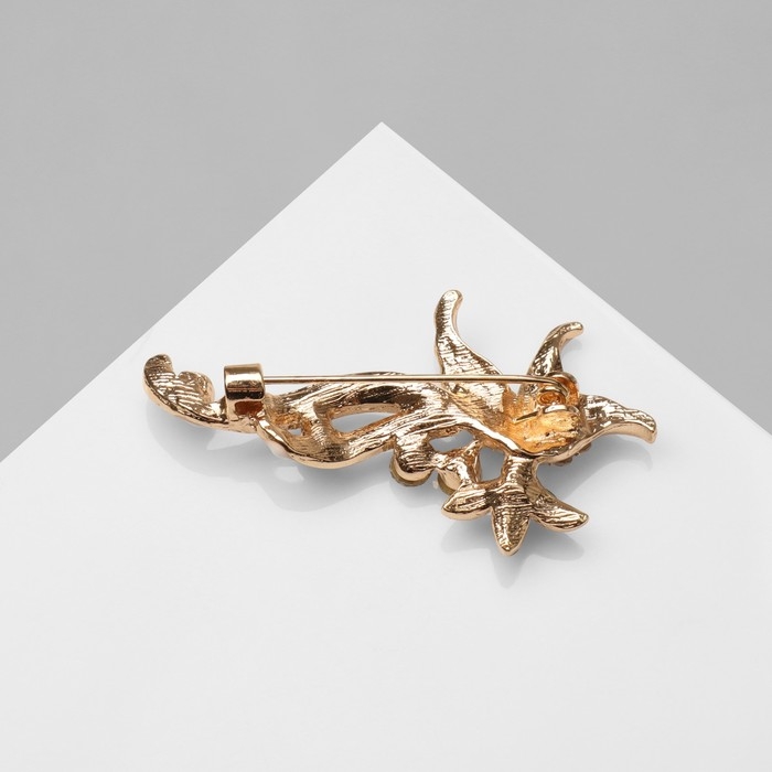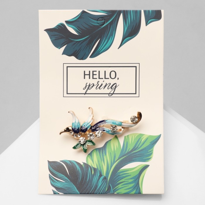 Брошь «Птица счастья», цвет бело-голубой в золоте