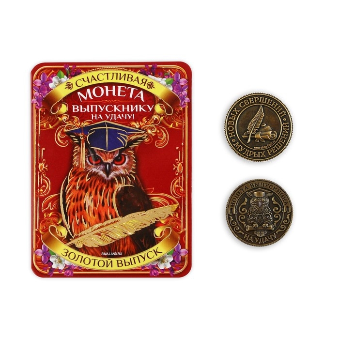 Монета - идеальный сувенир на выпускной, который станет настоящим талисманом и будет напоминать о важном этапе в жизни. На экзаменах такой амулет подарит спокойствие, поможет не поддаваться стрессу.