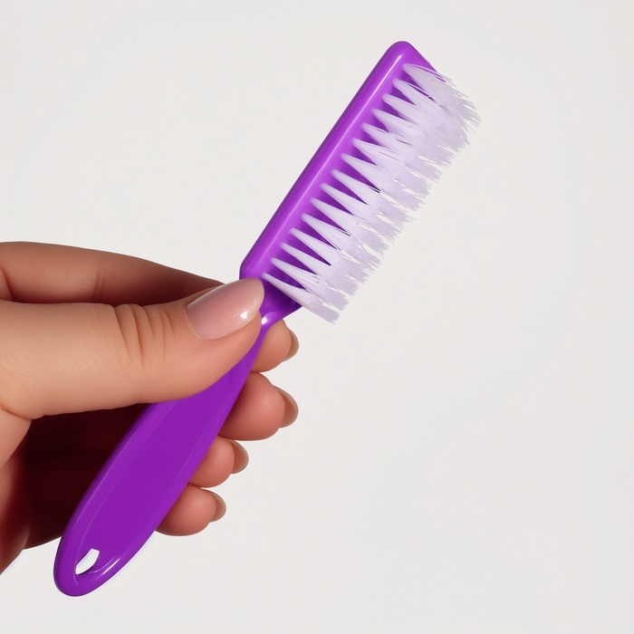 - Эффективная чистка: мягкие нейлоновые щетинки бережно удаляют загрязнения и опил с ногтей.