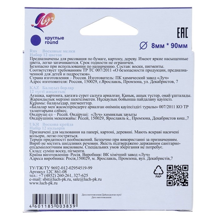 Восковые мелки, 12 цветов ТМ Артлавка