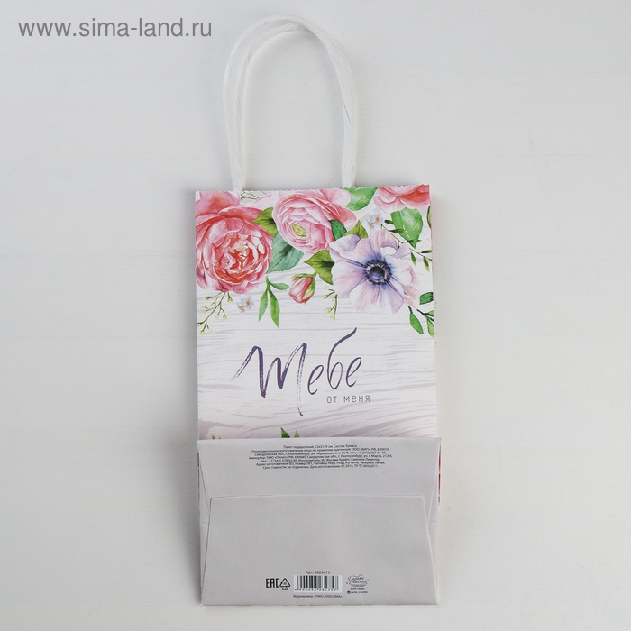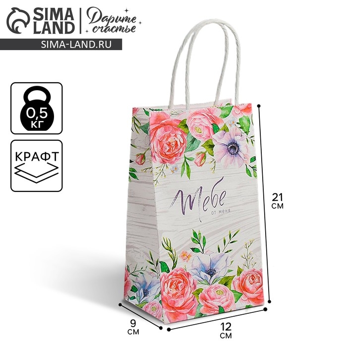 Пакет подарочный крафт, упаковка, «Тебе от меня», 12 х 21 х 9 см