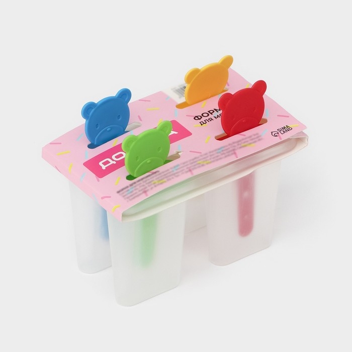 Форма для мороженого Доляна «Медвежонок», 13×11,5×7,5 см, 4 ячейки, цвет прозрачный