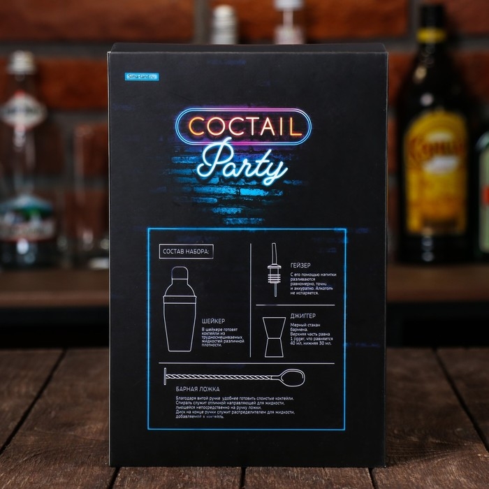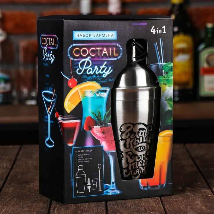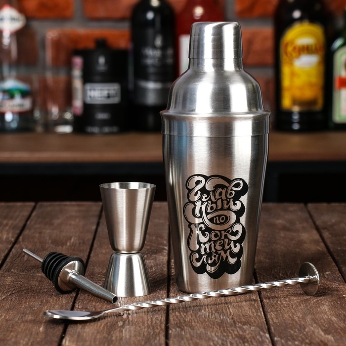 Набор для приготовления коктейлей «Главный по коктейлям», гейзер, джиггер, шейкер 600 мл, ложка