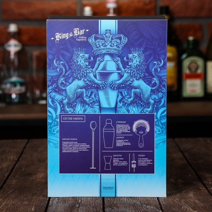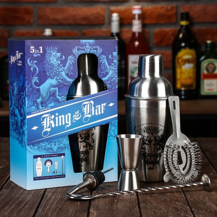 Набор для приготовления коктейлей «Король бара», гейзер, джиггер, шейкер 600 мл, стрейнер, ложка
