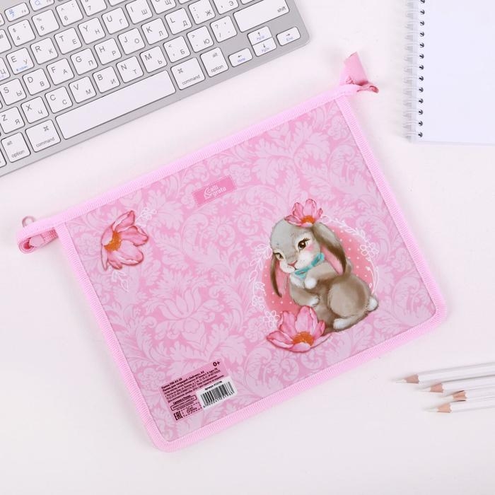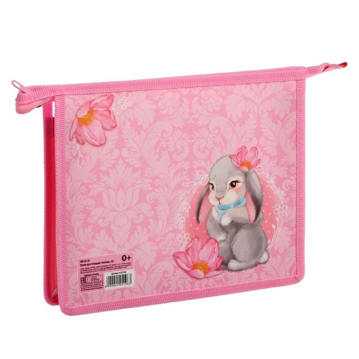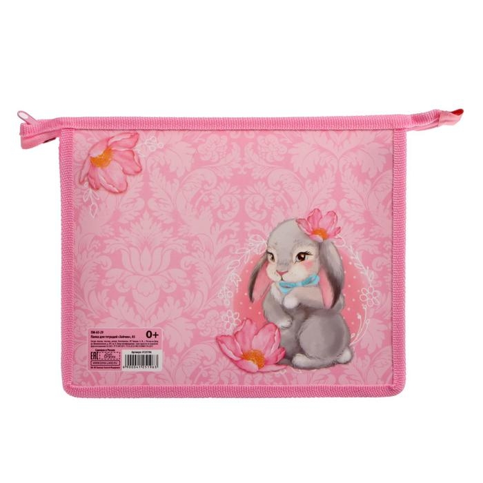 Папка для тетрадей А5, 230 х 190 х 50 мм, молния сверху, пластиковая, Calligrata "Зайчик"