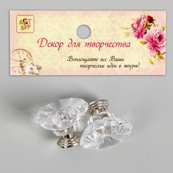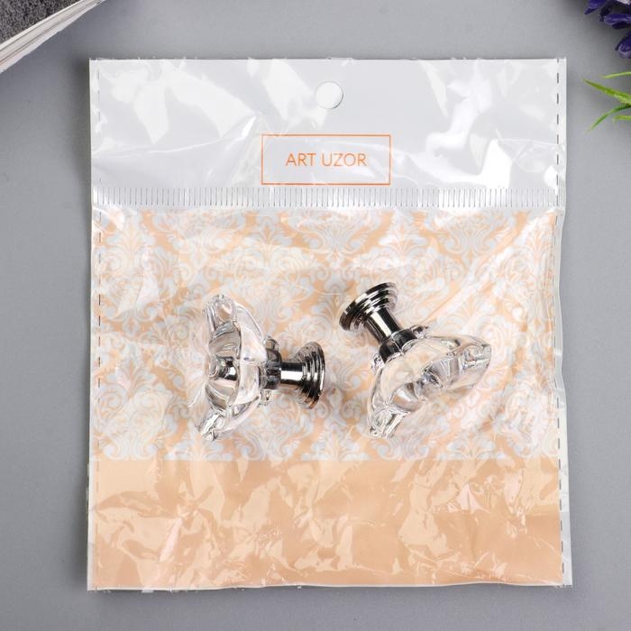 Ручка для шкатулки металл "Кристалл" набор 2 шт серебро 2,5х2,8х2,8 см