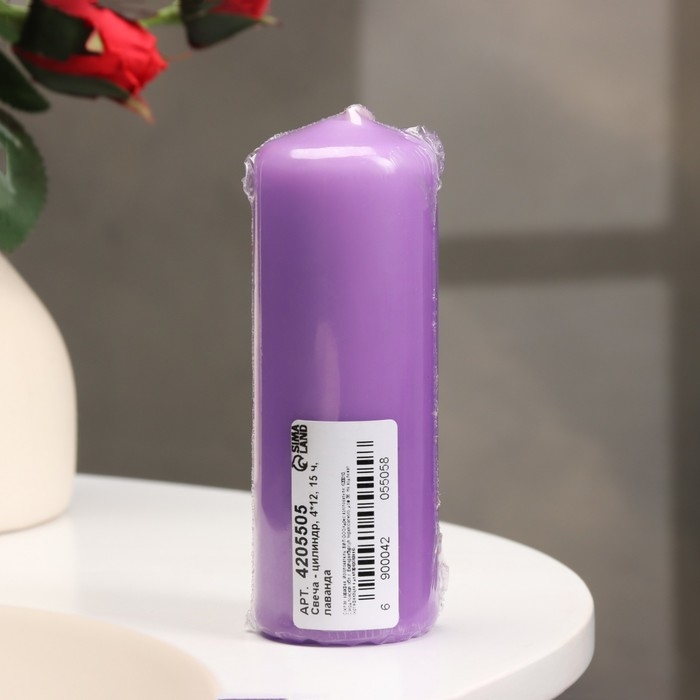 Свеча - цилиндр, 4×12 см, 15 ч, лаванда