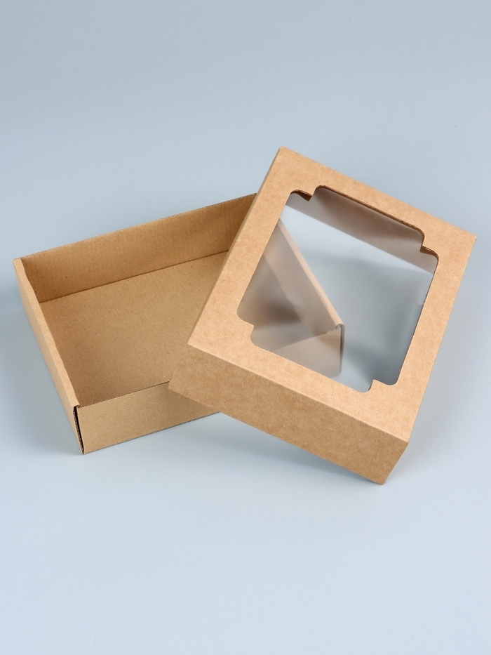 Коробка сборная без печати крышка-дно бурая с окном 18 х 15 х 5 см