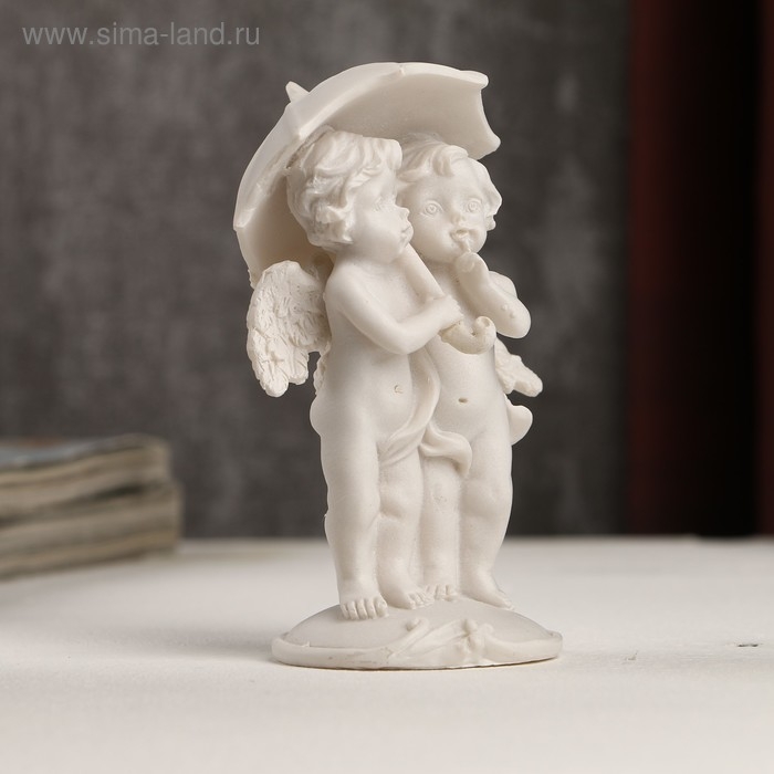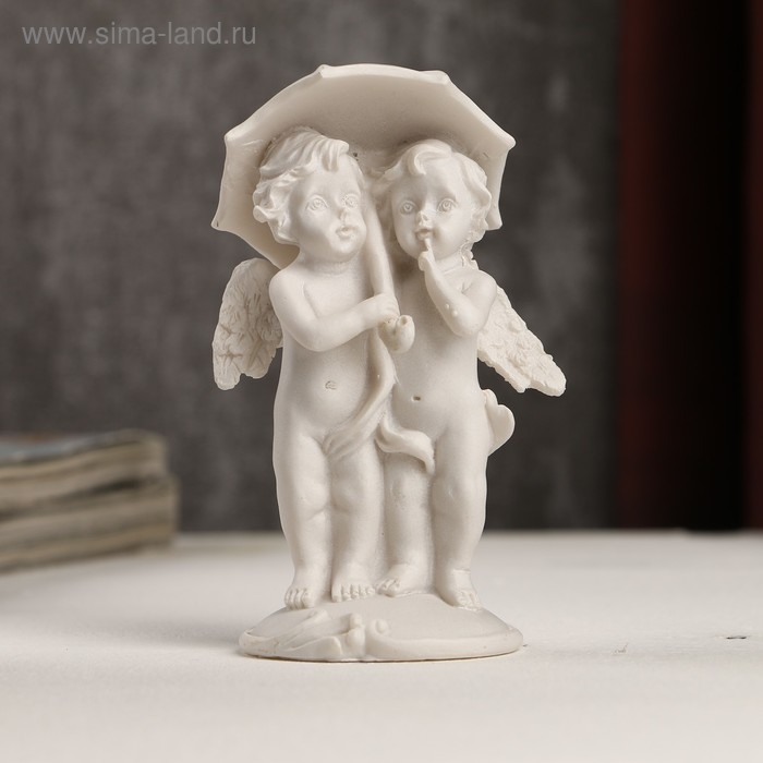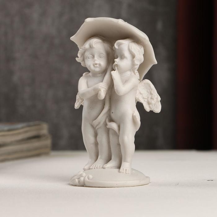Сувенир полистоун "Белоснежные ангелы под зонтом" 10,5х6х4,5 см
