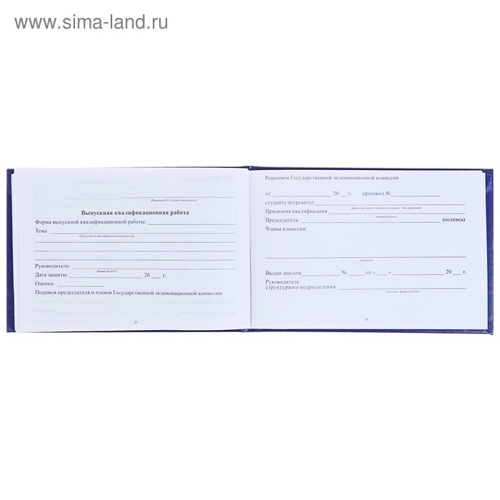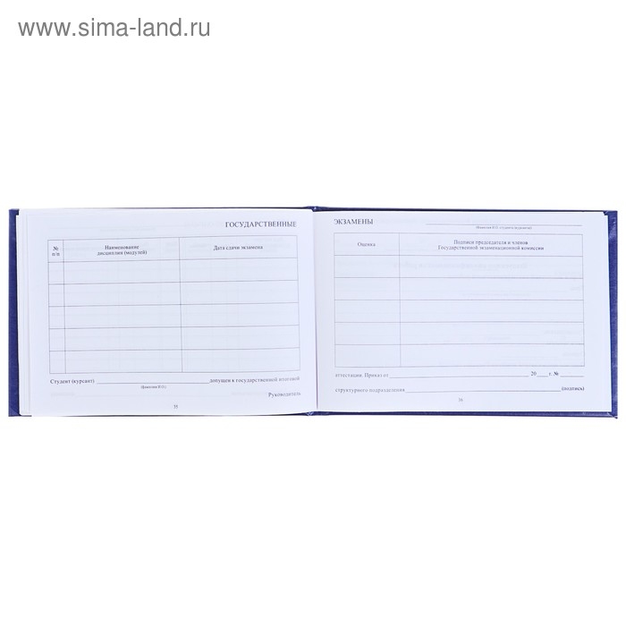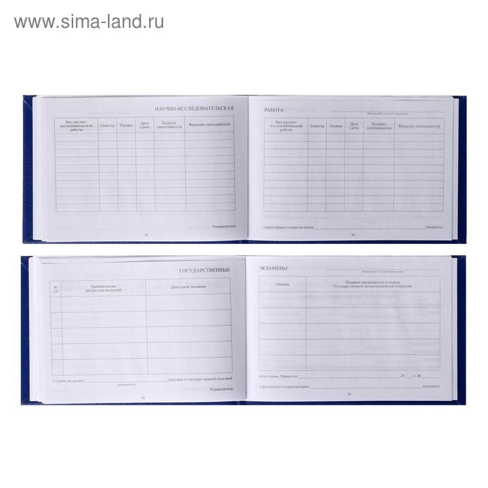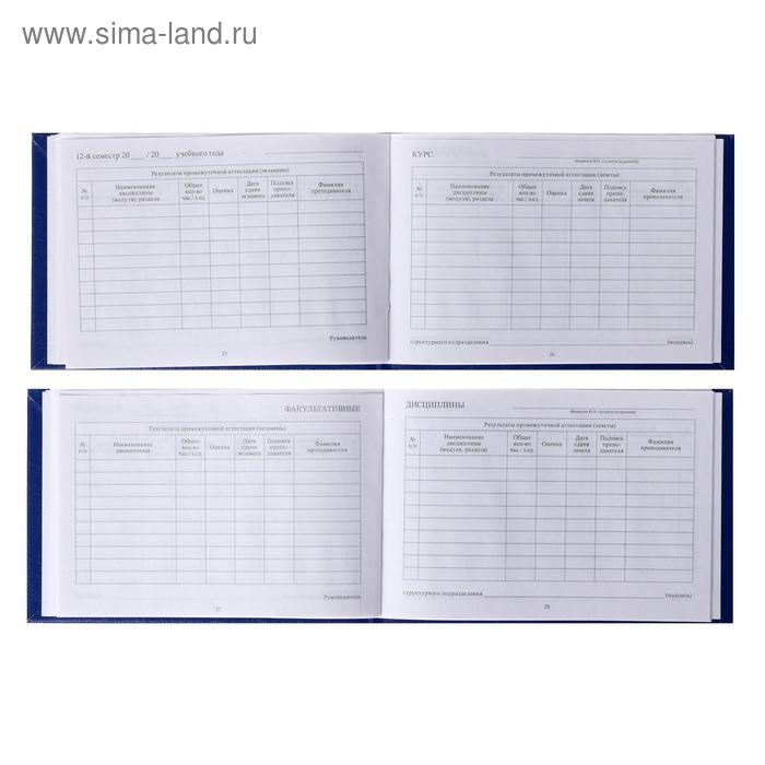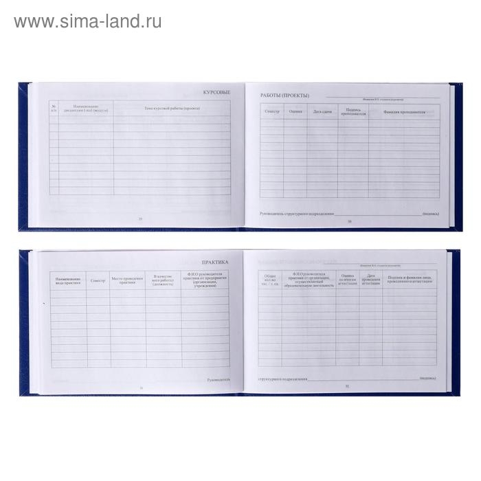 Зачетная книжка для ВУЗ 140 х 100 мм, Calligrata, жёсткая обложка, бумвинил, цвет синий