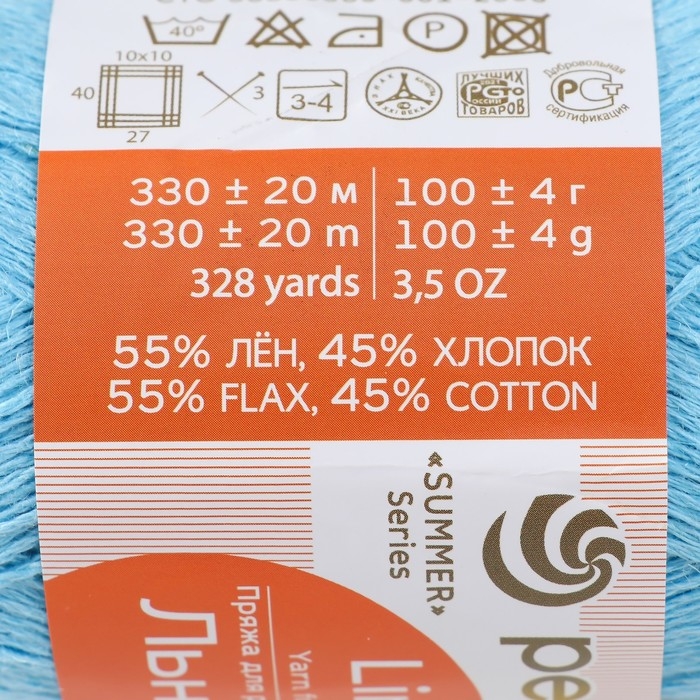 Пряжа для вязания спицами, крючком «Пехорский текстиль. Льняная», 55% лён, 45% хлопок, 330 м/100 г, (05 голубой)