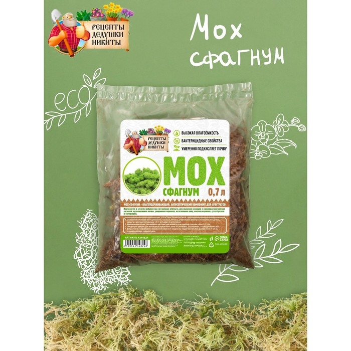 Мох сфагнум "Рецепты Дедушки Никиты" 0,7 л
