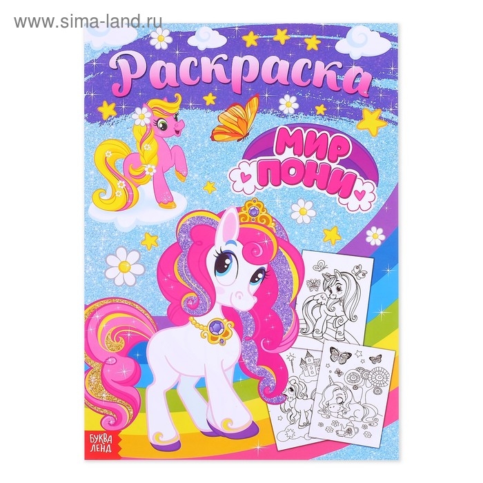 Раскраска для девочек «Мир пони», 16 стр., А4