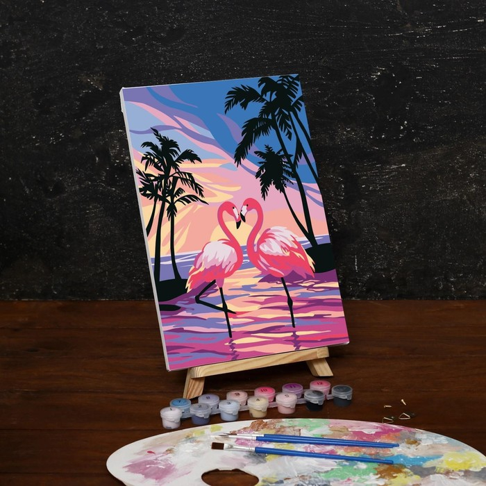 Картина по номерам на холсте с подрамником «Фламинго на закате», 30х20 см понравится и детям, и взрослым.