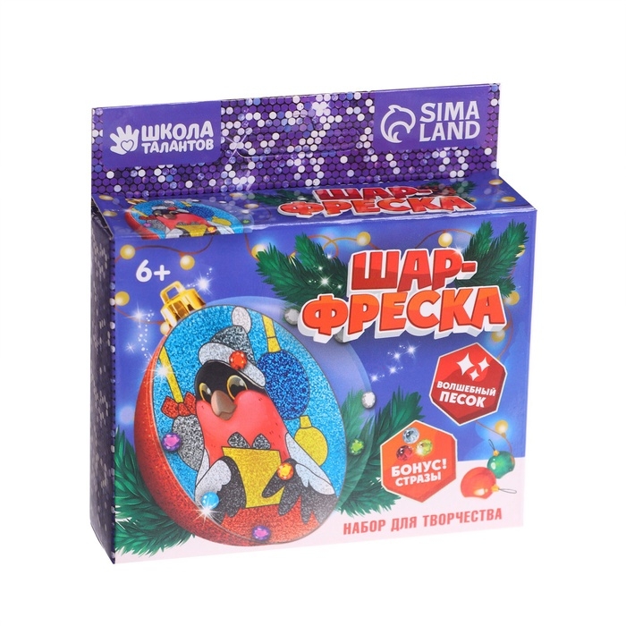 Ёлочный шар-фреска «Новый год! Снегирь с подарком», набор для творчества