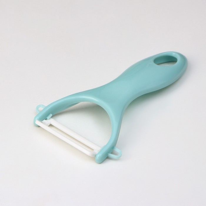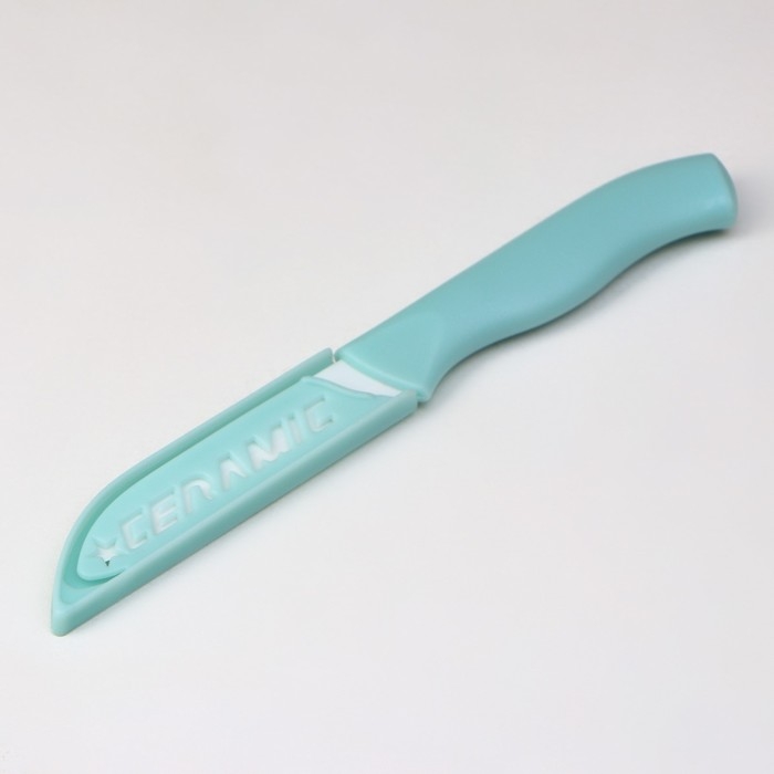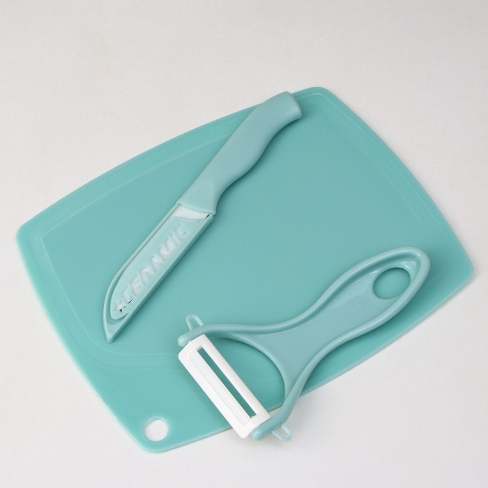 Набор кухонных принадлежностей Доляна «Керамик», 3 предмета: нож 16 см, овощечистка 12 см, доска 19,5×15,5 см, цвет голубой