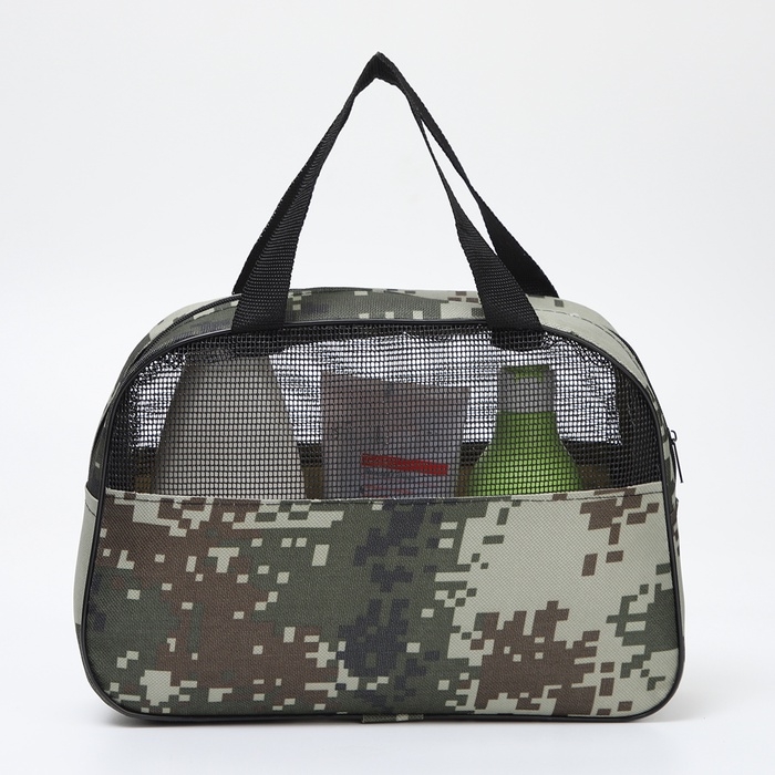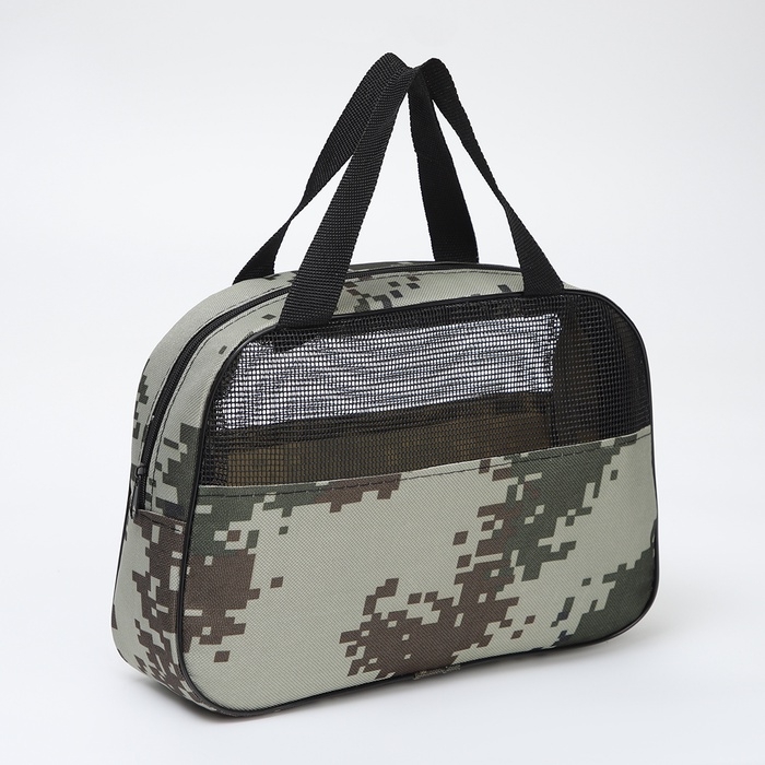 Косметичка на молнии, с ручками, цвет зелёный/бежевый