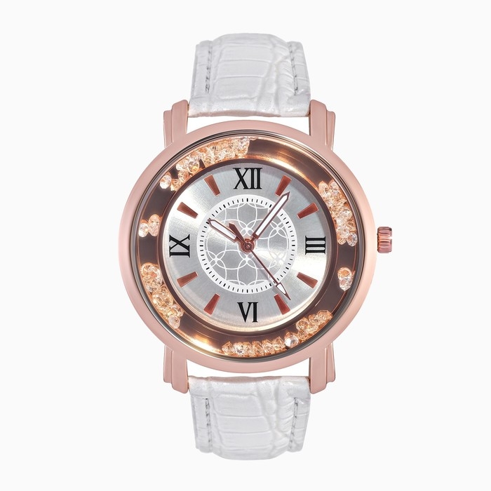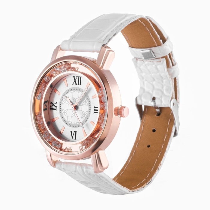 Часы наручные кварцевые женские "Bolingdun", d-3 см, ремешок экокожа, белые