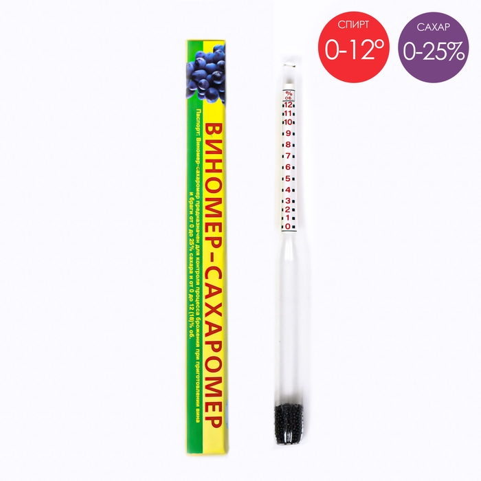 Виномер-сахаромер, бытовой, капиллярный, 0-12%, сахар: 0-25, 14 см