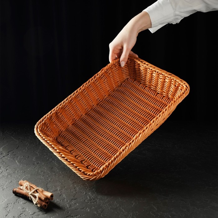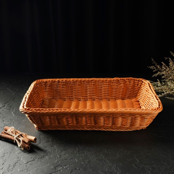 Корзинка для фруктов и хлеба Доляна «Капучино», пластик, плетёная, 34×24×7 см, коричневая