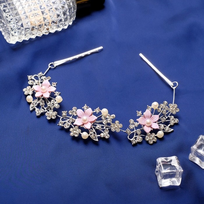 Аксессуар для волос "Моника" (на невидимках) сиреневые цветы, 20 см, серебро