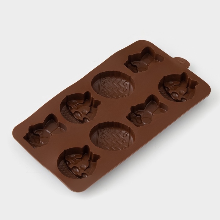 Форма для шоколада Доляна «Пасха», силикон, 20,7×10,6×3 см, 8 ячеек, коричневая