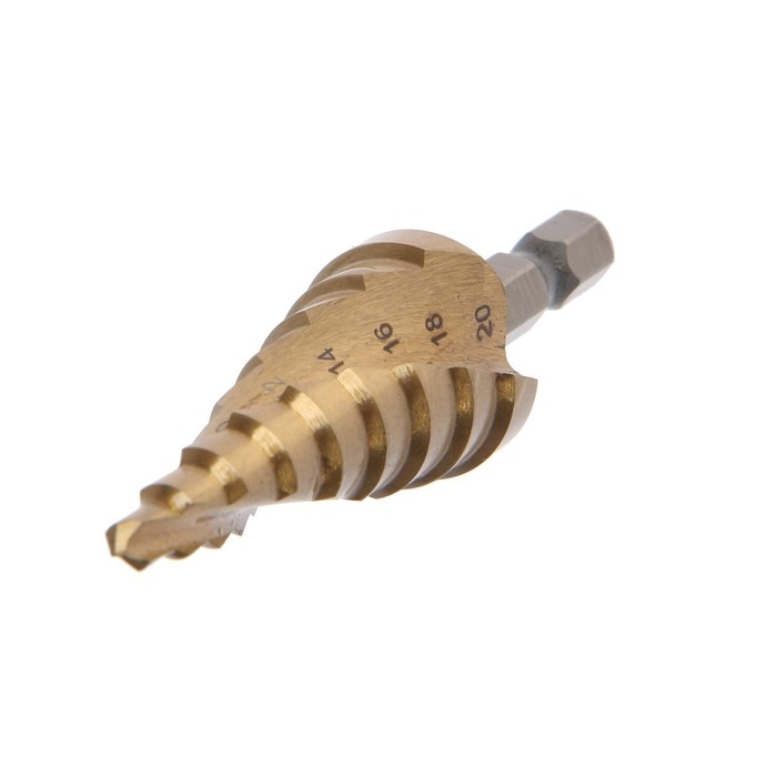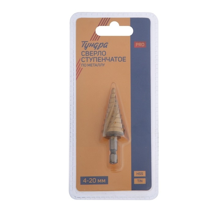 Сверло ступенчатое ТУНДРА ПРОФИ, HSS, TiN, спиральный профиль, шестигран. хвостовик, 4-20 мм