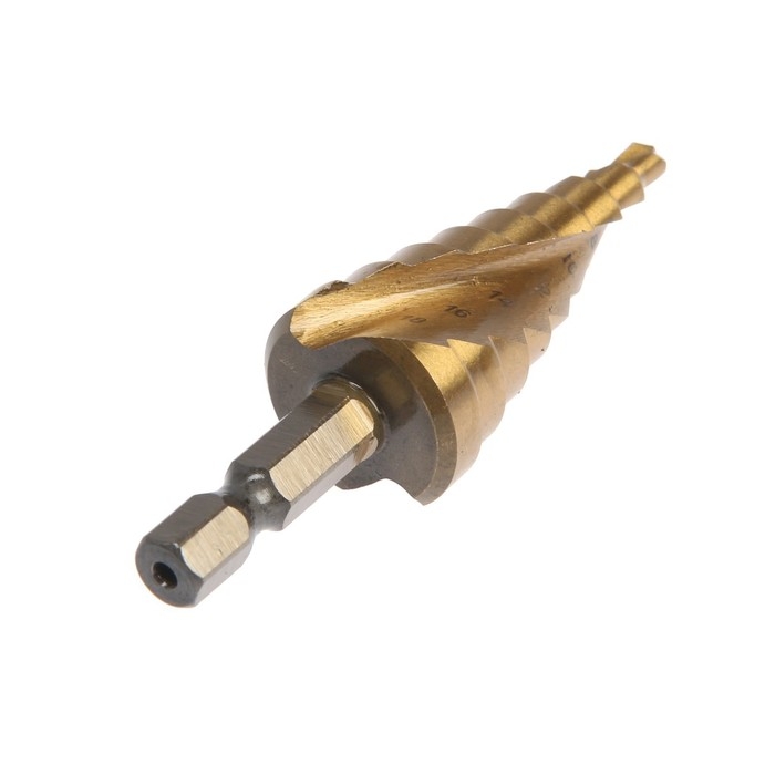 Сверло ступенчатое ТУНДРА, HSS, TiN, шестигранный хвостовик, 4 - 12 мм