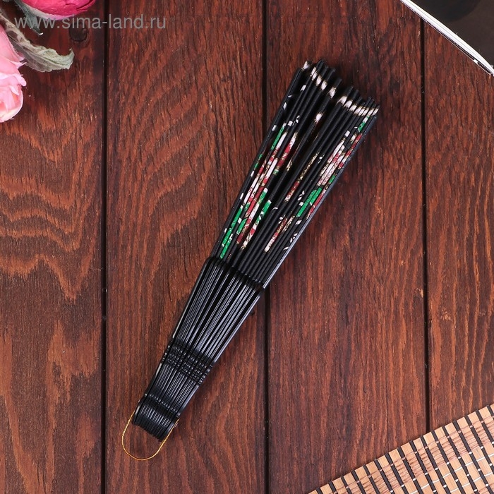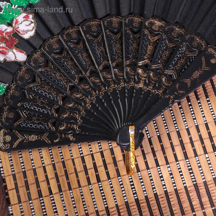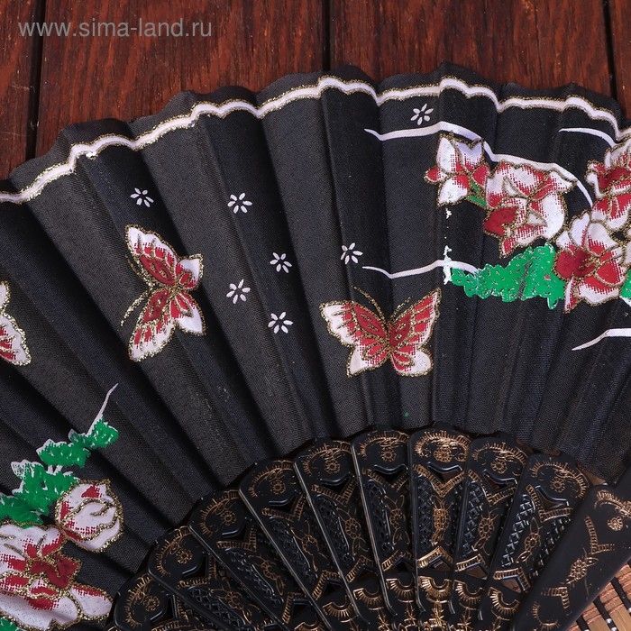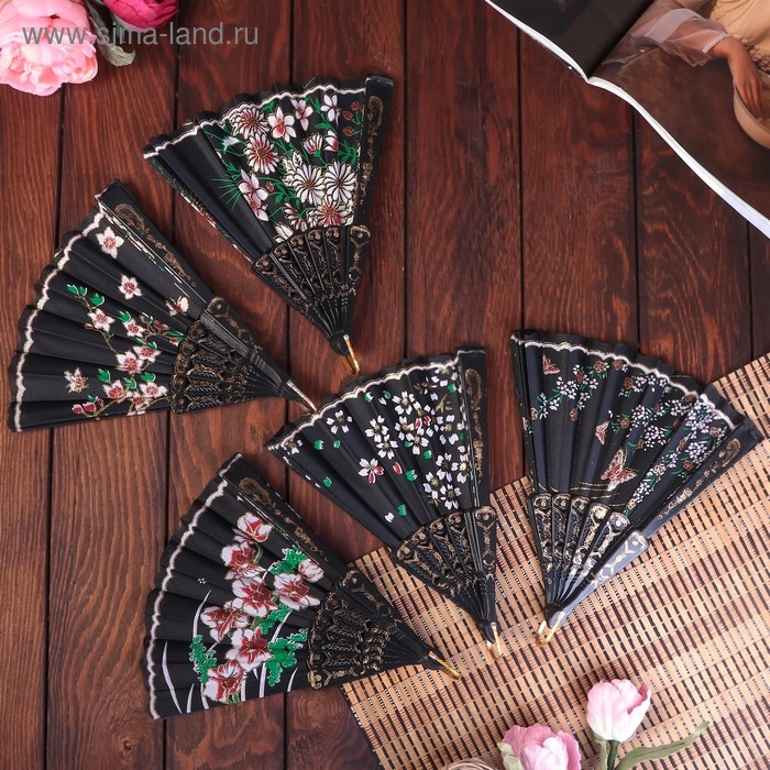 Веер пластик, текстиль "Полевые цветы" блёстки золото МИКС 23 см