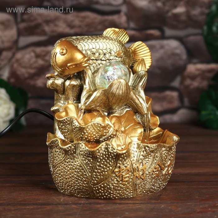 Фонтан настольный от сети, подсветка "Золотой карп с монетами" золото 21х15х12 см