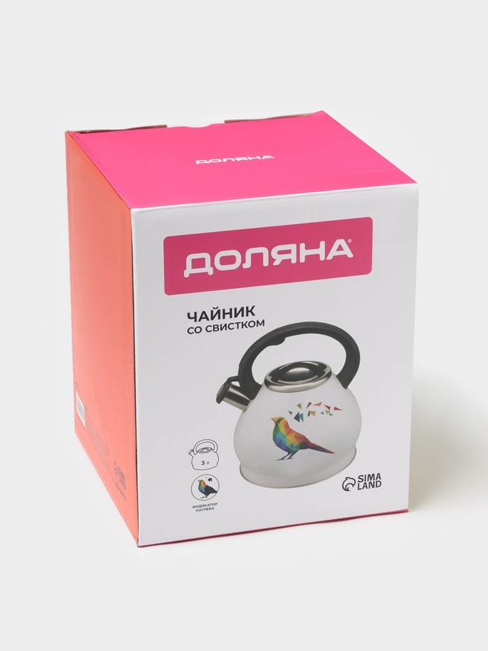 Чайник со свистком из нержавеющей стали Доляна Magic birds, 3 л, с индикатором нагрева, индукция