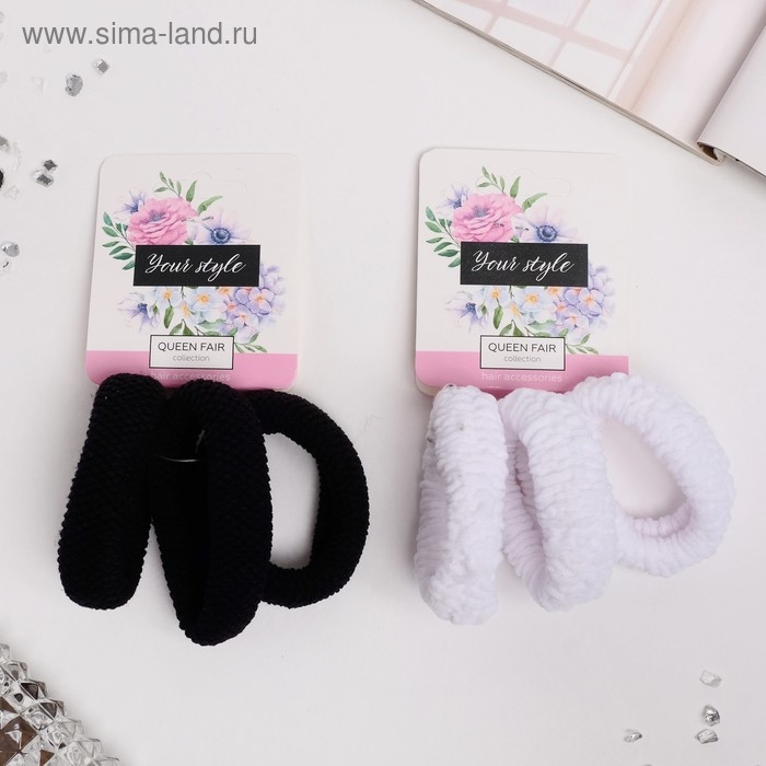 Резинка для волос "Клэр" (набор 3 шт) 2х5 см, чёрный белый