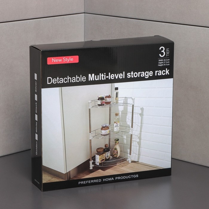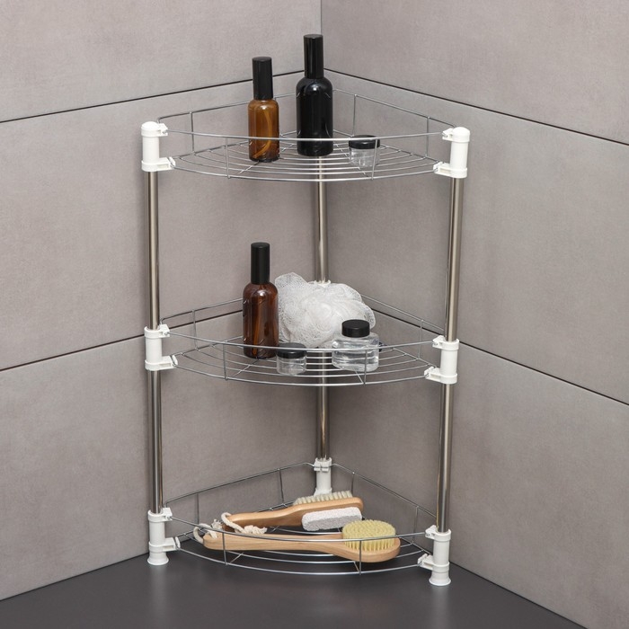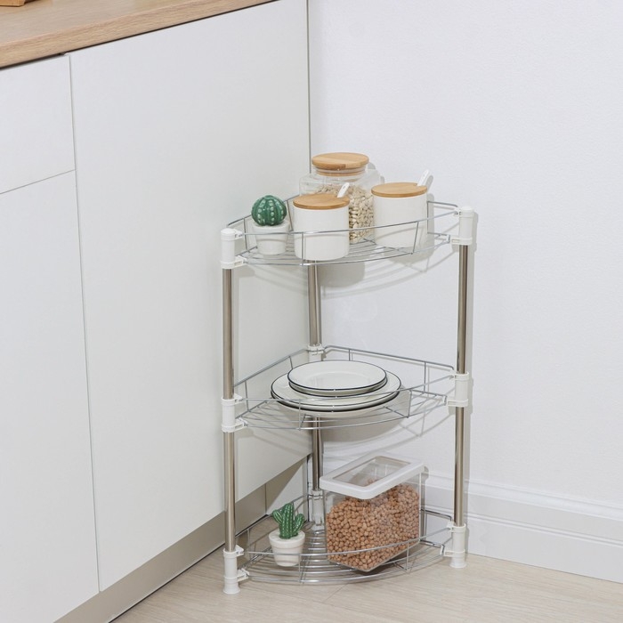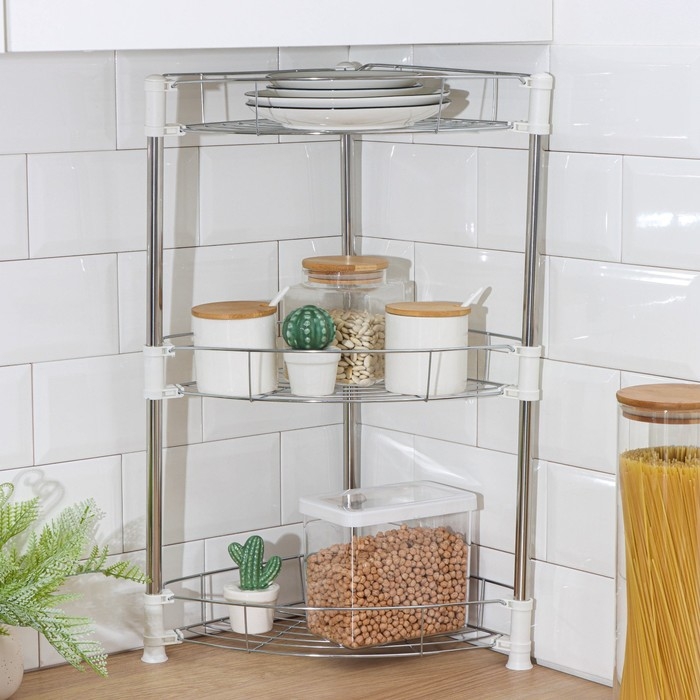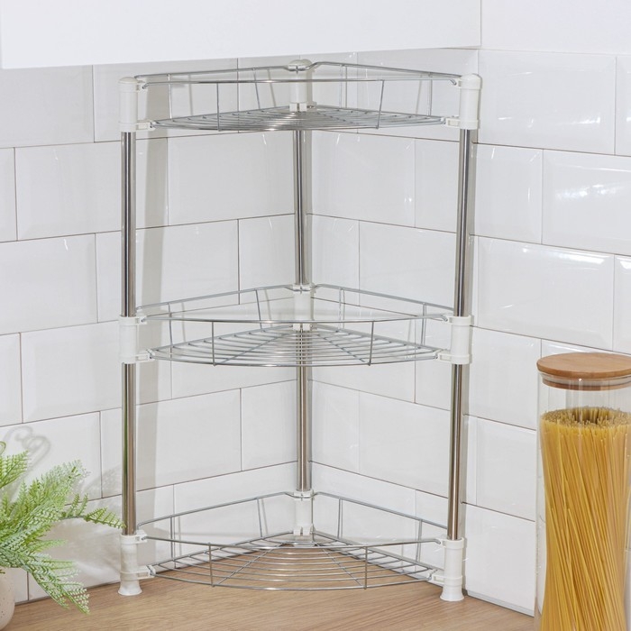 Этажерка настольная угловая 3-х секционная, 38,5×27,5×54,5 см, цвет хром